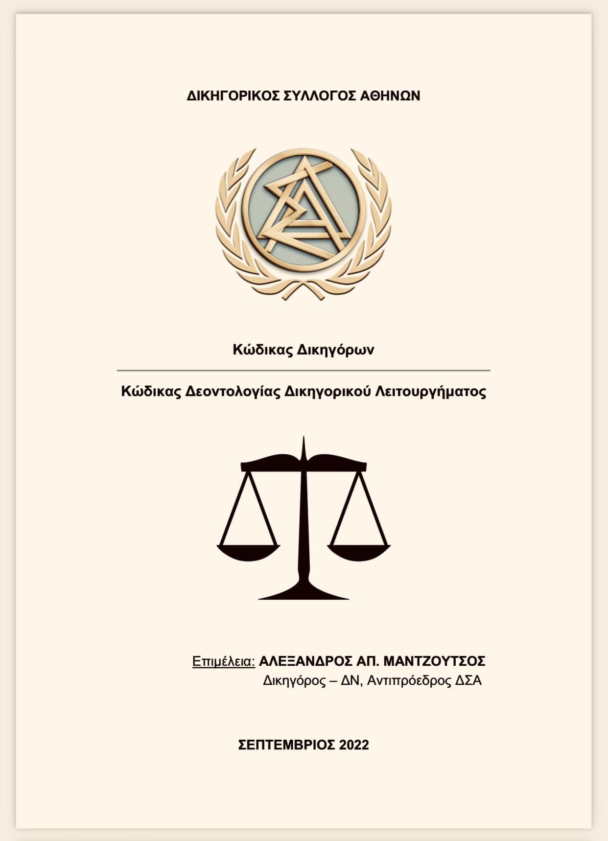 Κώδικας Δικηγόρων & Κώδικας Δεοντολογίας Δικηγορικού Λειτουργήματος (Σεπτέμβριος 2022)