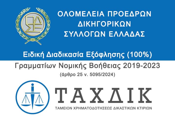 Κατ’ εφαρμογή του άρθρου 25 του Ν. 5095/2024, σε συνέχεια της ολοκλήρωσης της εξόφλησης του υπολειπόμενου 20% των ειδικών γραμματίων Νομικής Βοήθειας των ετών 2019-2022 που είχαν υπαχθεί στη διαδικασία του άρθρου 69 του Ν. 5016/2023,