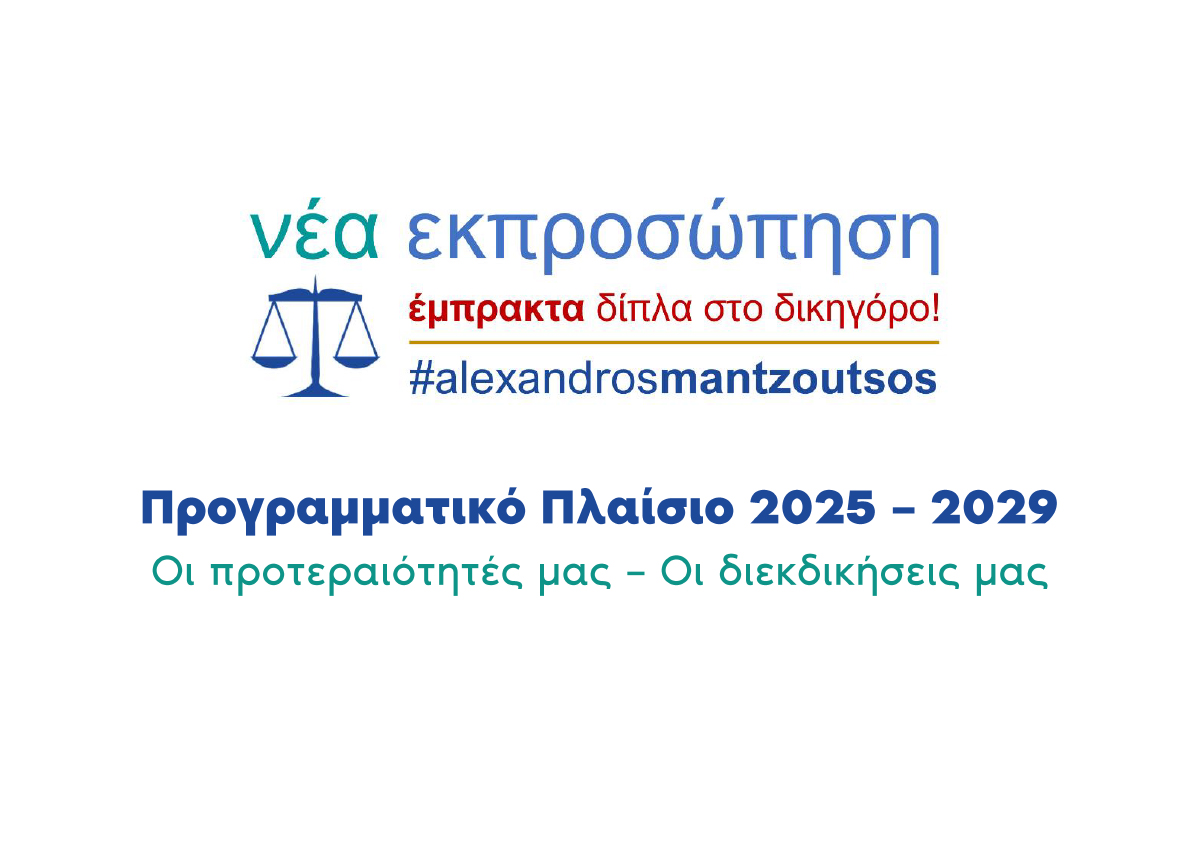 Ολοκληρώνοντας τη διαβούλευση επί των πορισμάτων του Διαλόγου για μια Νέα Εκπροσώπηση, μετά από εξαντλητική μελέτη όλων των επιμέρους θεμάτων, είμαστε στην ευχάριστη θέση να παρουσιάσουμε το «Προγραμματικό Πλαίσιο για την τετραετία 2025-2029».