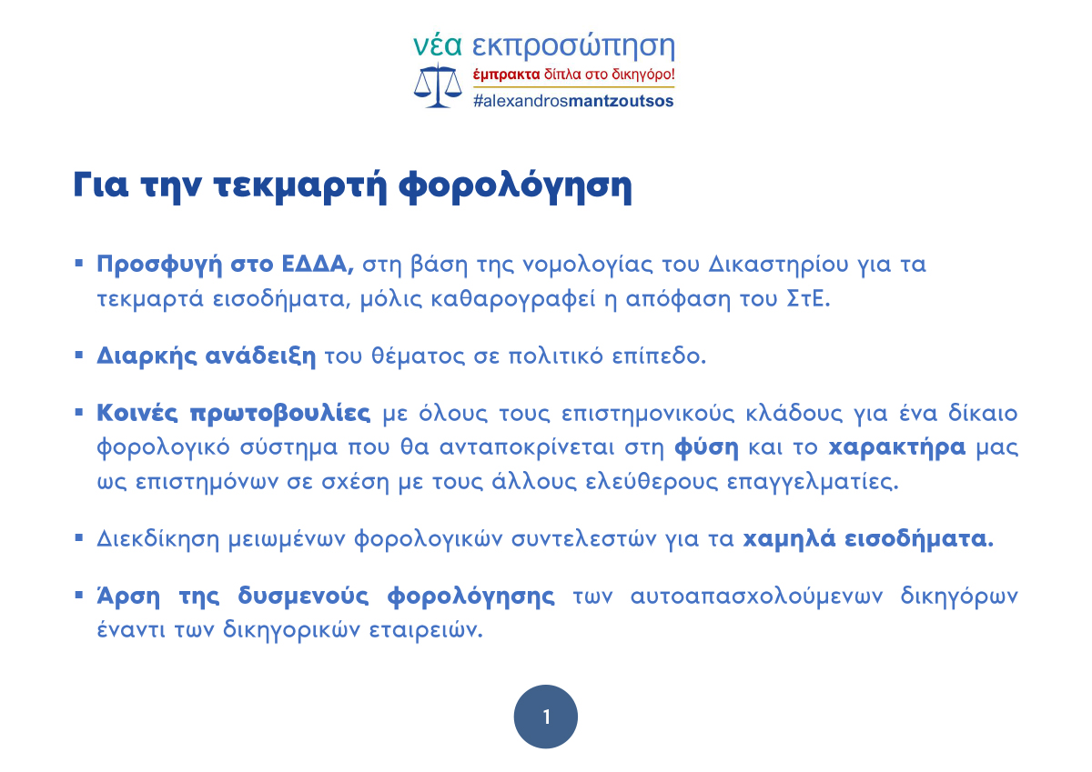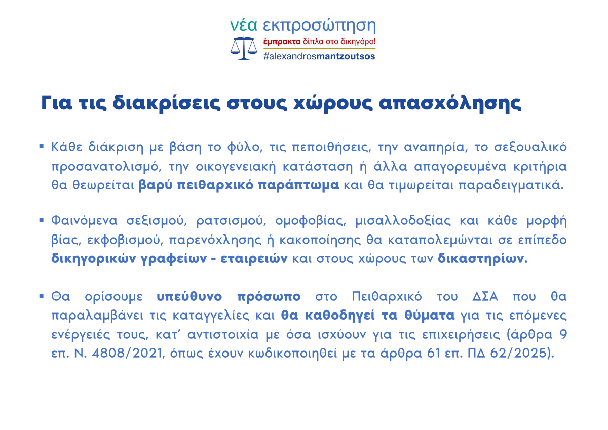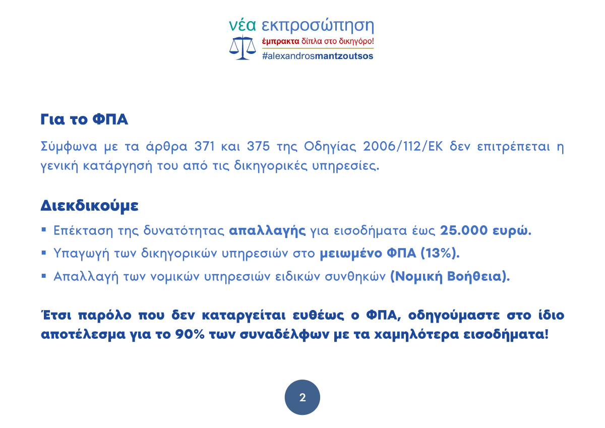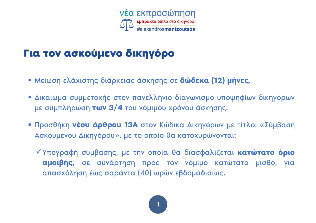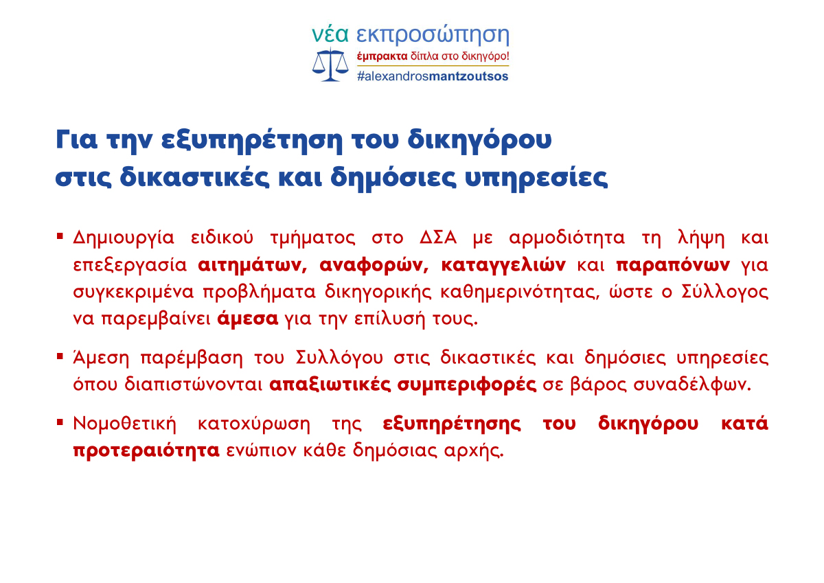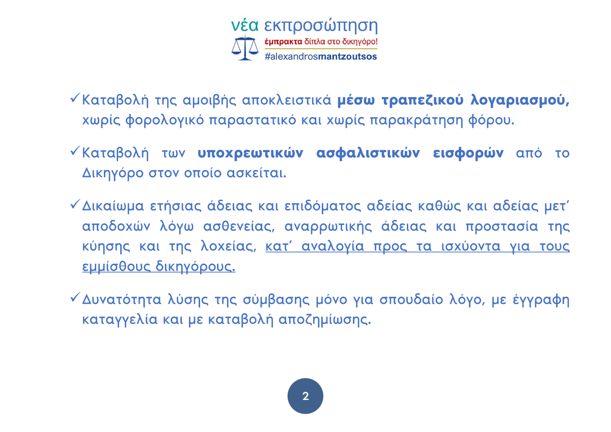 ΝΕΑ ΕΚΠΡΟΣΩΠΗΣΗ – ΕΜΠΡΑΚΤΑ ΔΙΠΛΑ ΣΤΟ ΔΙΚΗΓΟΡΟ
